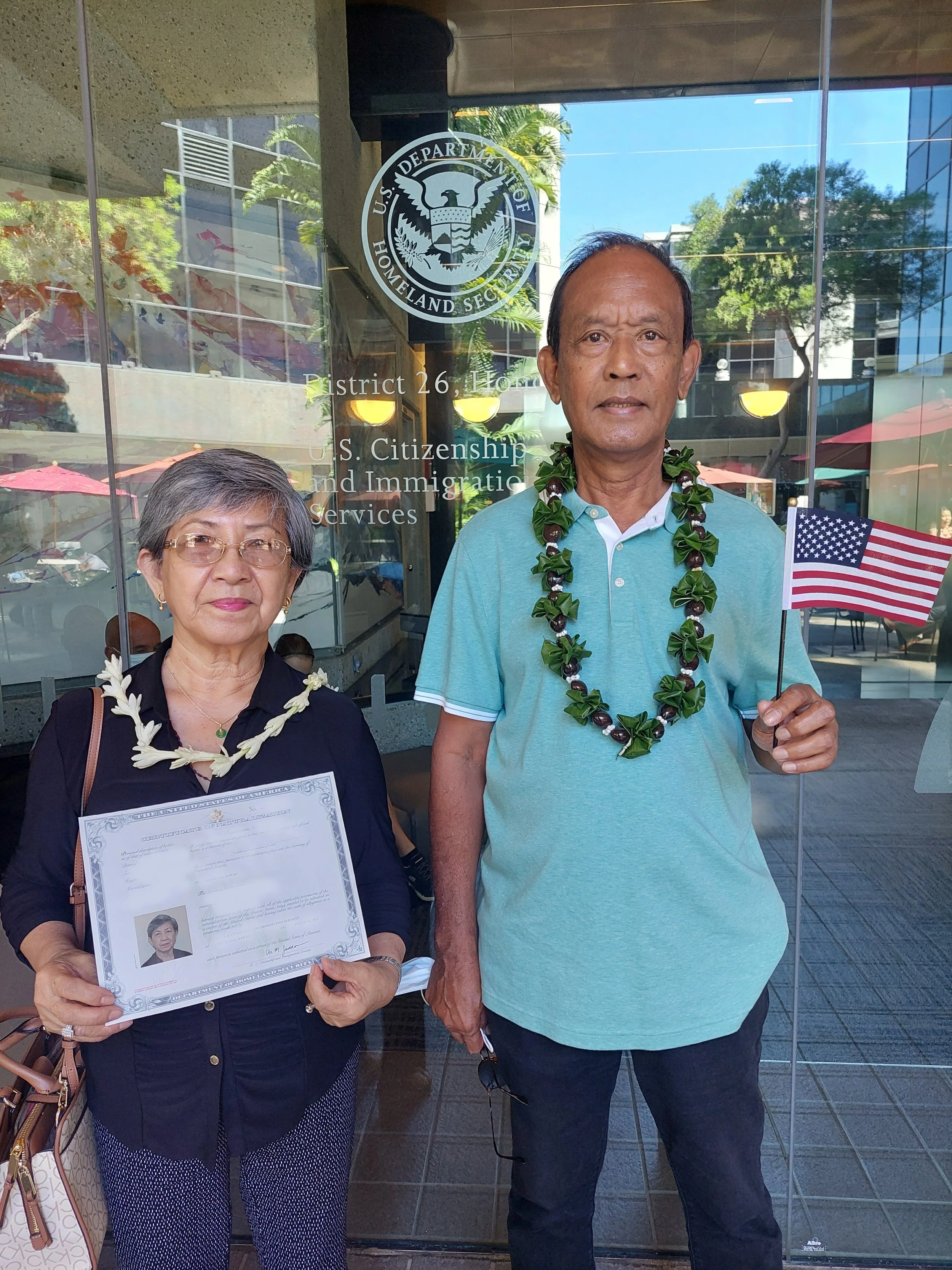 TLC is proud to celebrate two of our country’s newest citizens! TLCʻs Lia Nakao helped provide Estrella with study materials for the citizenship exam. Estrella says she is happy to be an American citizen and that she was so grateful for the support from TLC throughout the application process. Her husband, Jose, was sworn in as a US citizen two weeks later, and they hope to soon be renuited with their son from the Philippines, who is also applying for US citizenship.